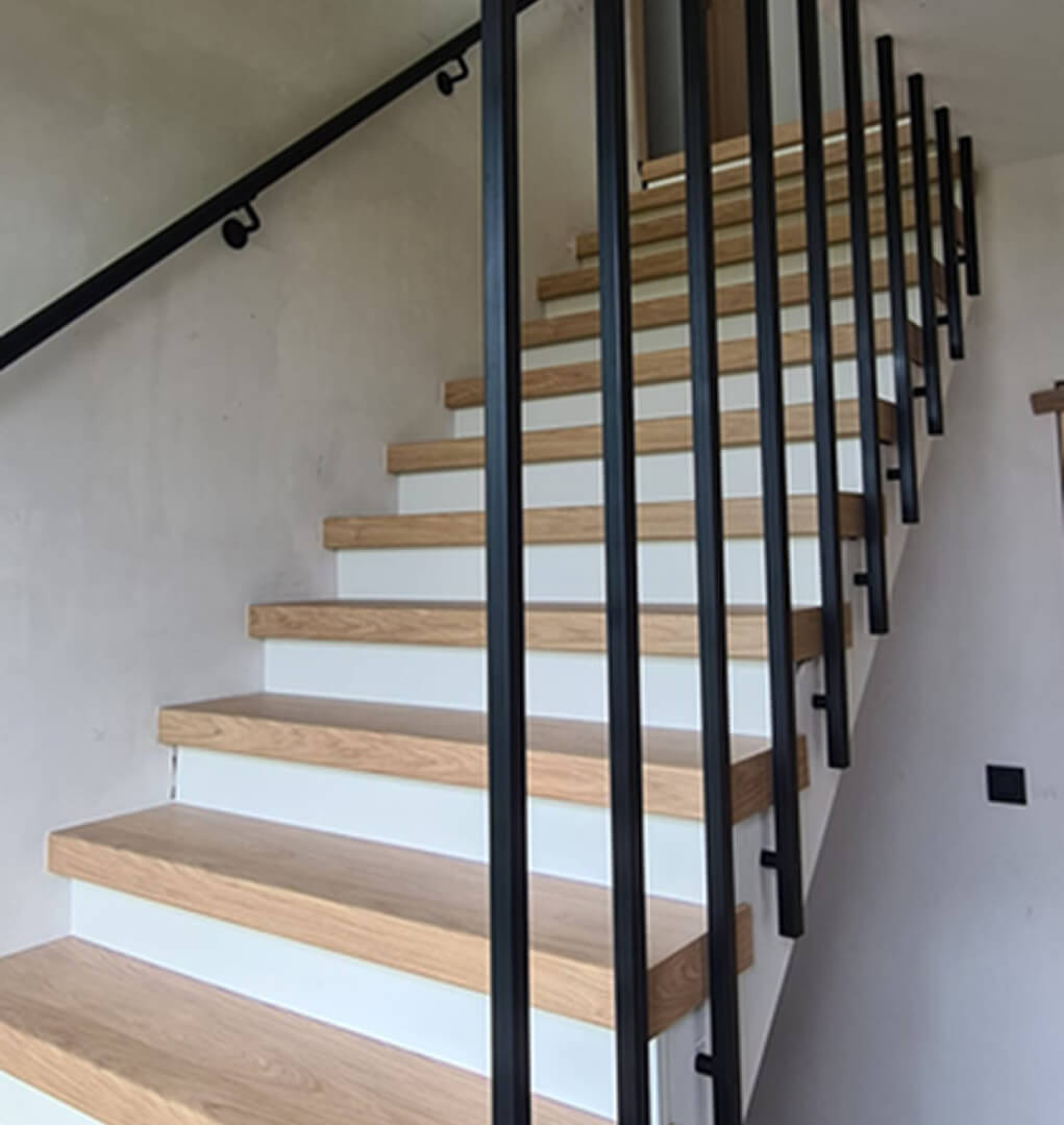 Nous travaillons exclusivement avec des bois de haute qualité tels que le chêne ou l’hévéa, qui garantissent la durabilité et une finition raffinée. Nous proposons également des solutions personnalisées pour les poignées, idéales pour une meilleure prise en main et une finition élégante de vos escaliers.
